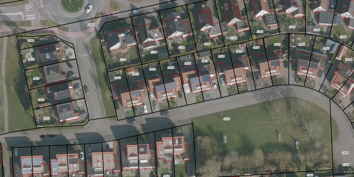 Het perceel waarop de Trije 7 staat heeft een oppervlakte van 280 m². Dit is een middelgroot perceel. De perceeloppervlakte wordt geregistreerd door het Kadaster. Gedetailleerde informatie over de maten van dit perceel kunt u vinden in het rapport Kadastrale kaart met maatvoering van de Trije 7.