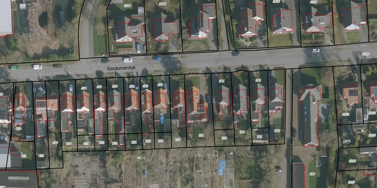 Het perceel waarop Goutumerdyk 51 staat heeft een oppervlakte van 582 m². Dit is een groot perceel. De perceeloppervlakte wordt geregistreerd door het Kadaster. Gedetailleerde informatie over de maten van dit perceel kunt u vinden in het rapport Kadastrale kaart met maatvoering van Goutumerdyk 51.