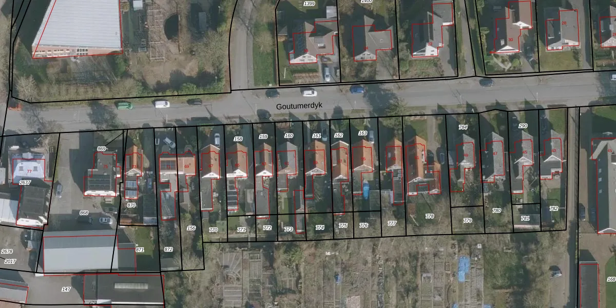 Het perceel waarop Goutumerdyk 59 staat heeft een oppervlakte van 266 m². Dit is een middelgroot perceel. De perceeloppervlakte wordt geregistreerd door het Kadaster. Gedetailleerde informatie over de maten van dit perceel kunt u vinden in het rapport Kadastrale kaart met maatvoering van Goutumerdyk 59.