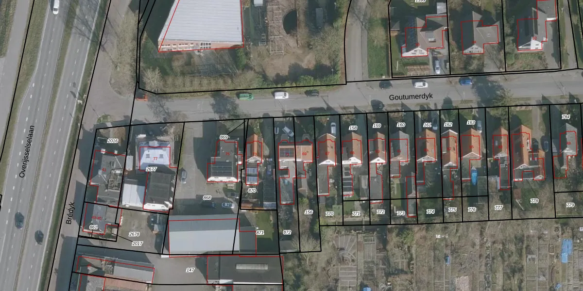 Het perceel waarop Goutumerdyk 71 staat heeft een oppervlakte van 325 m². Dit is een groot perceel. De perceeloppervlakte wordt geregistreerd door het Kadaster. Gedetailleerde informatie over de maten van dit perceel kunt u vinden in het rapport Kadastrale kaart met maatvoering van Goutumerdyk 71.