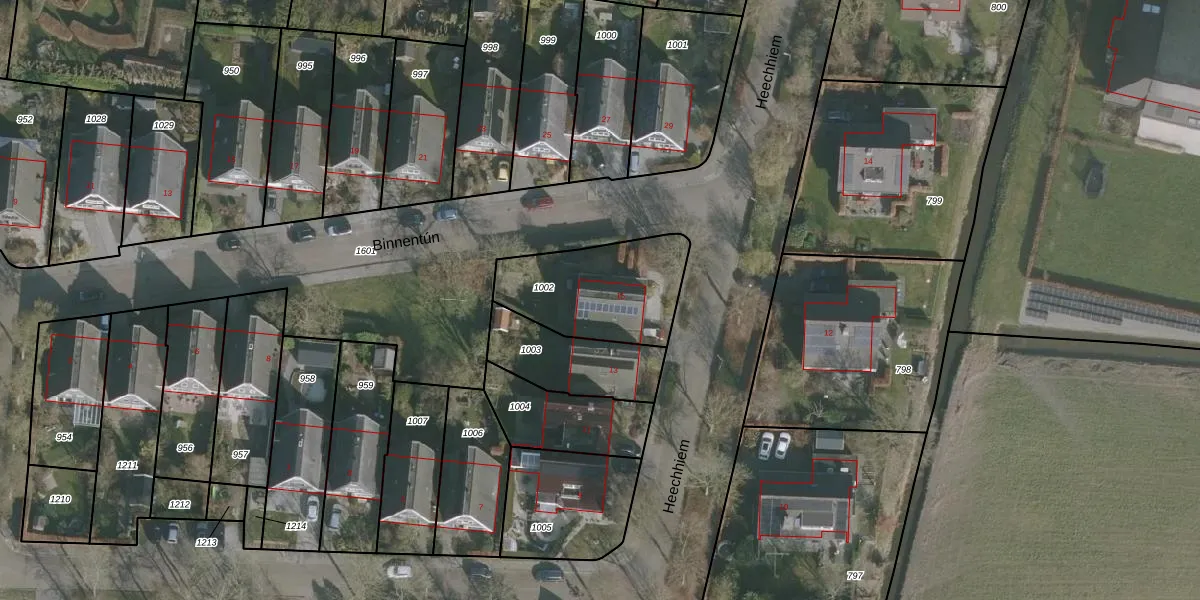 Het perceel waarop Heechhiem 15 staat heeft een oppervlakte van 441 m². Dit is een groot perceel. De perceeloppervlakte wordt geregistreerd door het Kadaster. Gedetailleerde informatie over de maten van dit perceel kunt u vinden in het rapport Kadastrale kaart met maatvoering van Heechhiem 15.