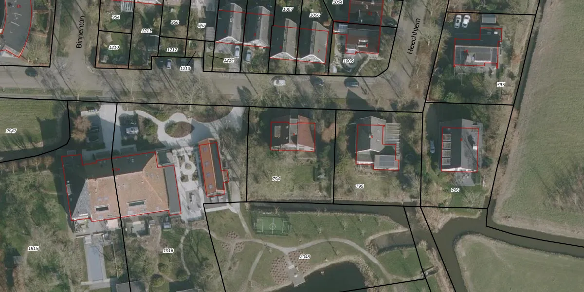 Het perceel waarop Heechhiem 4 staat heeft een oppervlakte van 959 m². Dit is een groot perceel. De perceeloppervlakte wordt geregistreerd door het Kadaster. Gedetailleerde informatie over de maten van dit perceel kunt u vinden in het rapport Kadastrale kaart met maatvoering van Heechhiem 4.