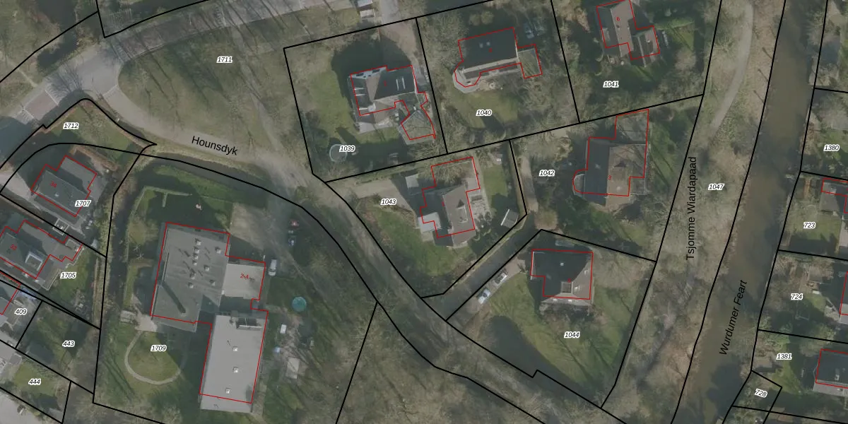 Het perceel waarop Hounsdyk 1 staat heeft een oppervlakte van 997 m². Dit is een groot perceel. De perceeloppervlakte wordt geregistreerd door het Kadaster. Gedetailleerde informatie over de maten van dit perceel kunt u vinden in het rapport Kadastrale kaart met maatvoering van Hounsdyk 1.