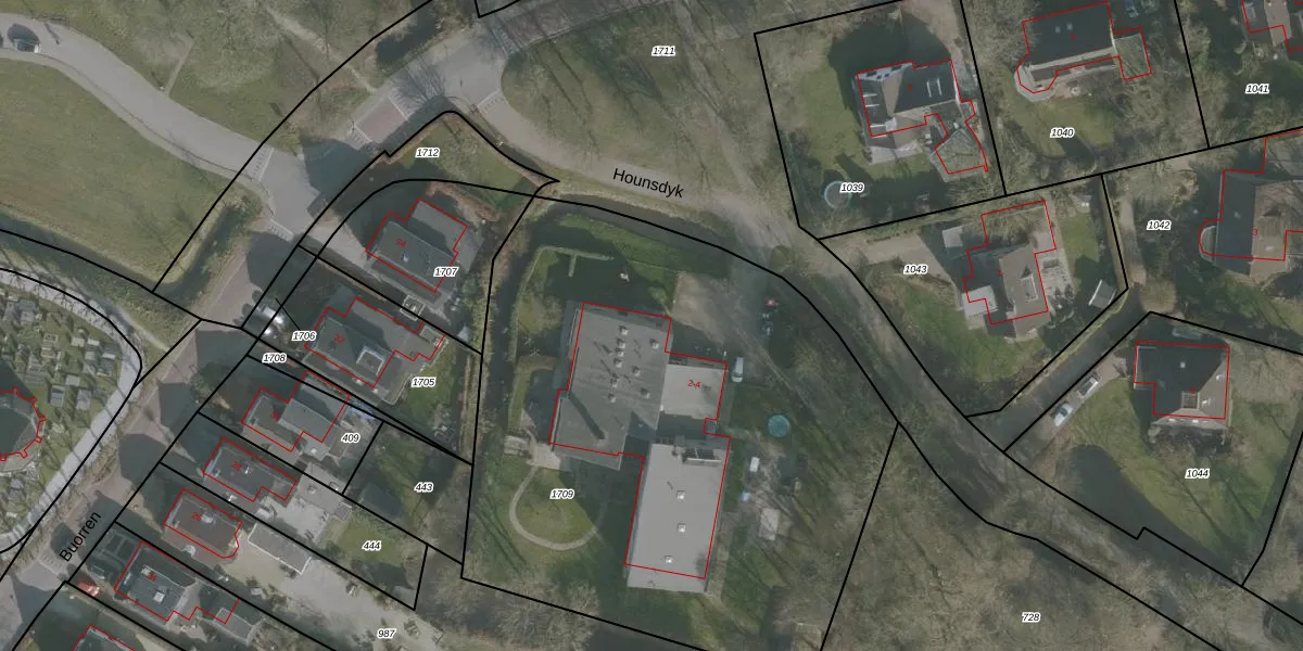 Het perceel waarop Hounsdyk 2 staat heeft een oppervlakte van 3580 m². Dit is een zeer groot perceel. De perceeloppervlakte wordt geregistreerd door het Kadaster. Gedetailleerde informatie over de maten van dit perceel kunt u vinden in het rapport Kadastrale kaart met maatvoering van Hounsdyk 2.