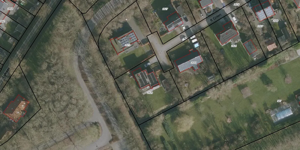 It Grien 9 is gelegen op kadastraal perceel HZM00F2629. Deze kadastrale aanduiding is uniek en wordt gebruikt door het Kadaster om eigendomsrechten en andere zakelijke rechten vast te leggen. Het perceel maakt onderdeel uit van de kadastrale gemeente Huizum.