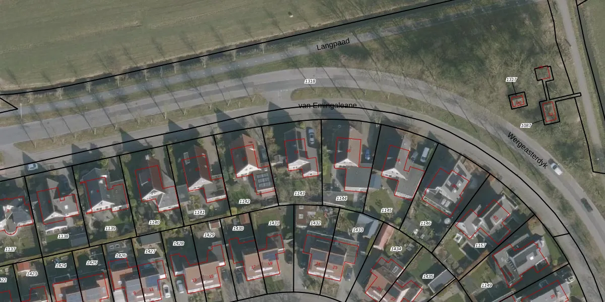 Het perceel waarop van Emingaleane 14 staat heeft een oppervlakte van 474 m². Dit is een groot perceel. De perceeloppervlakte wordt geregistreerd door het Kadaster. Gedetailleerde informatie over de maten van dit perceel kunt u vinden in het rapport Kadastrale kaart met maatvoering van van Emingaleane 14.