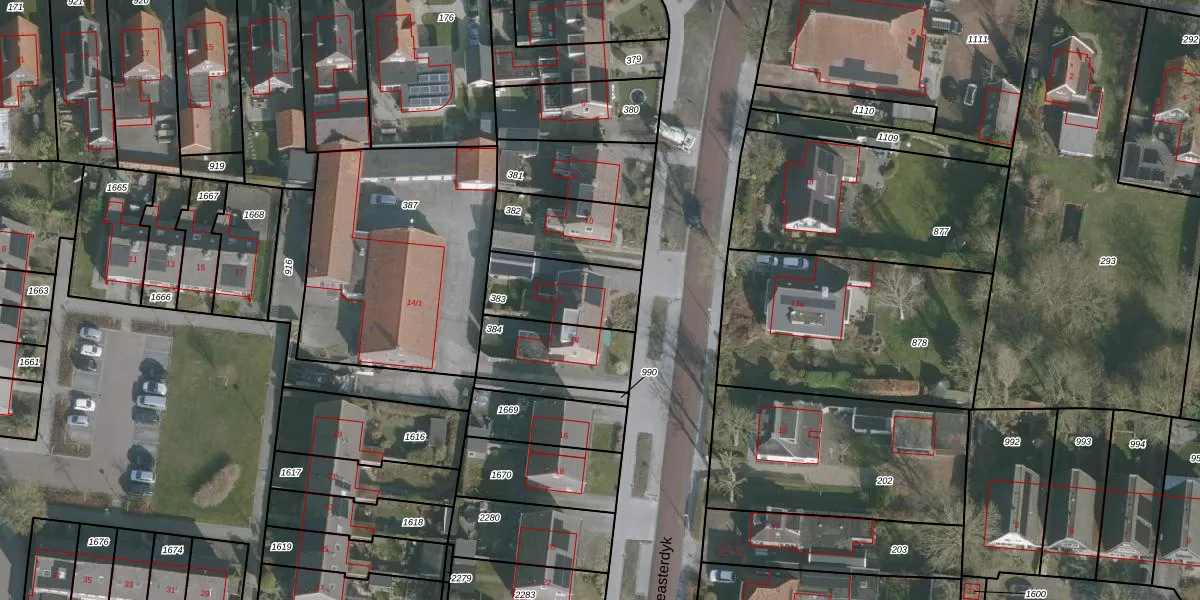 Het adres is gelegen op perceel 383 in de sectie F en de kadastrale gemeente Huizum. De kadastrale aanduiding is aldus HZM00-F-383. De gemiddelde perceelgrootte in Huizum is 1510,31 m². Dit perceel is kleiner: de perceeloppervlakte bedraagt 265 m². Het kleinste perceel in de kadastrale gemeente is 0 m² groot. De grootste perceeloppervlakte is 75,1 ha. Er zijn geen andere adressen aanwezig op het perceel. De huidige grenzen van het perceel zijn digitaal in de Basisregistratie Kadaster (BRK) geregistreerd op 09-10-2002.