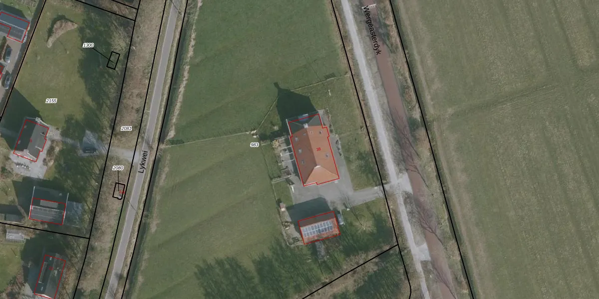 Wergeasterdyk 38 is gelegen op kadastraal perceel HZM00F983. Deze kadastrale aanduiding is uniek en wordt gebruikt door het Kadaster om eigendomsrechten en andere zakelijke rechten vast te leggen. Het perceel maakt onderdeel uit van de kadastrale gemeente Huizum.
