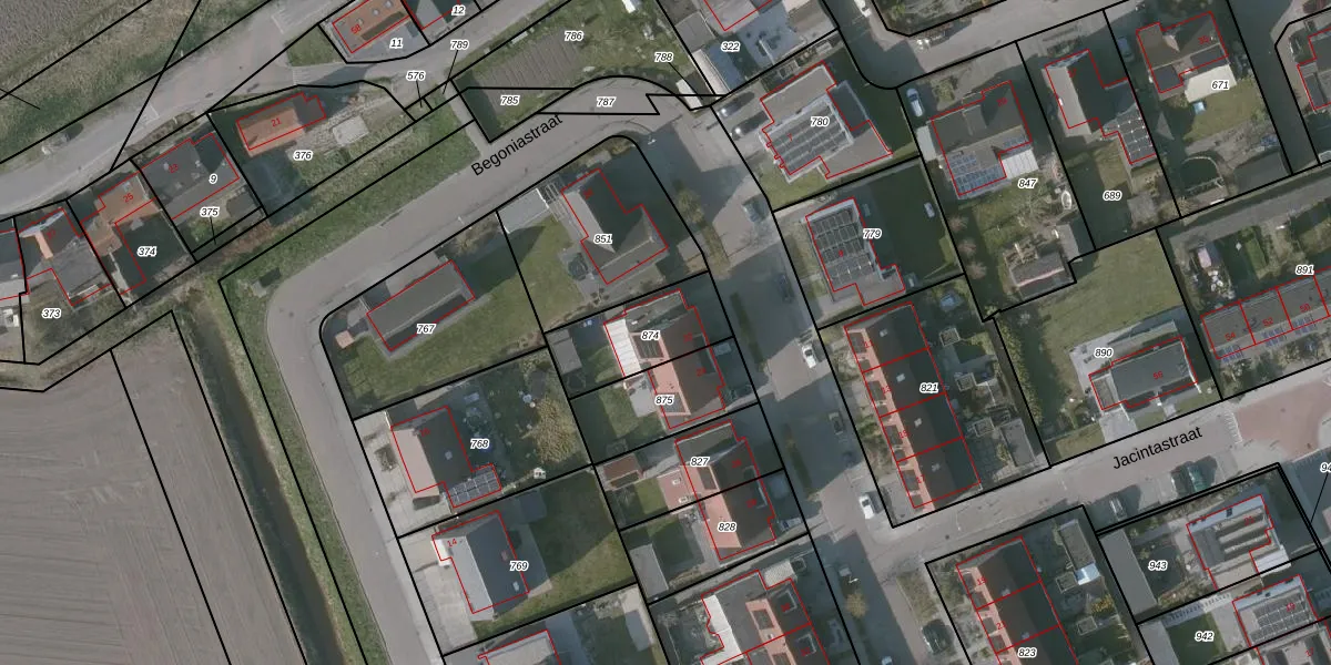 Gebruik de zoekbalk of klik op een perceel voor informatie over de adressen binnen dit perceel.