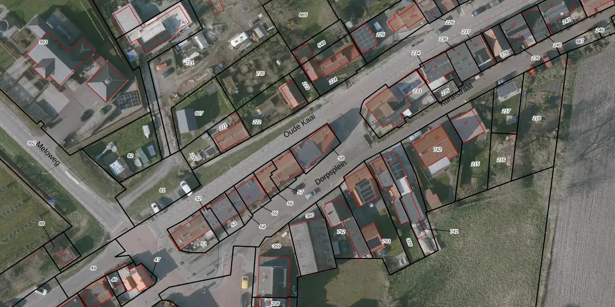 Dorpsplein 19 is gelegen op kadastraal perceel HUL00H58. Deze kadastrale aanduiding is uniek en wordt gebruikt door het Kadaster om eigendomsrechten en andere zakelijke rechten vast te leggen. Het perceel maakt onderdeel uit van de kadastrale gemeente Hulst.