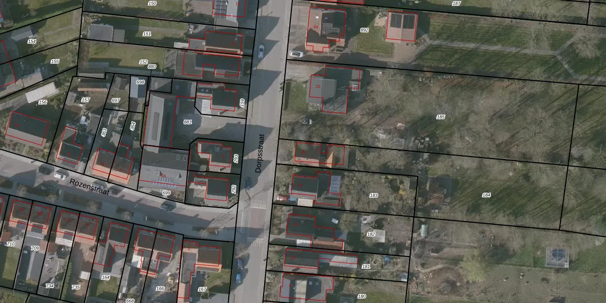 Dorpsstraat 16 is gelegen op kadastraal perceel HUL00H184. Deze kadastrale aanduiding is uniek en wordt gebruikt door het Kadaster om eigendomsrechten en andere zakelijke rechten vast te leggen. Het perceel maakt onderdeel uit van de kadastrale gemeente Hulst.
