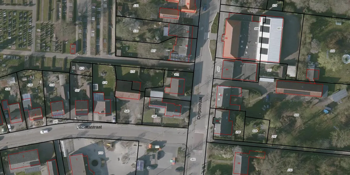 Gebruik de zoekbalk of klik op een perceel voor informatie over de adressen binnen dit perceel.