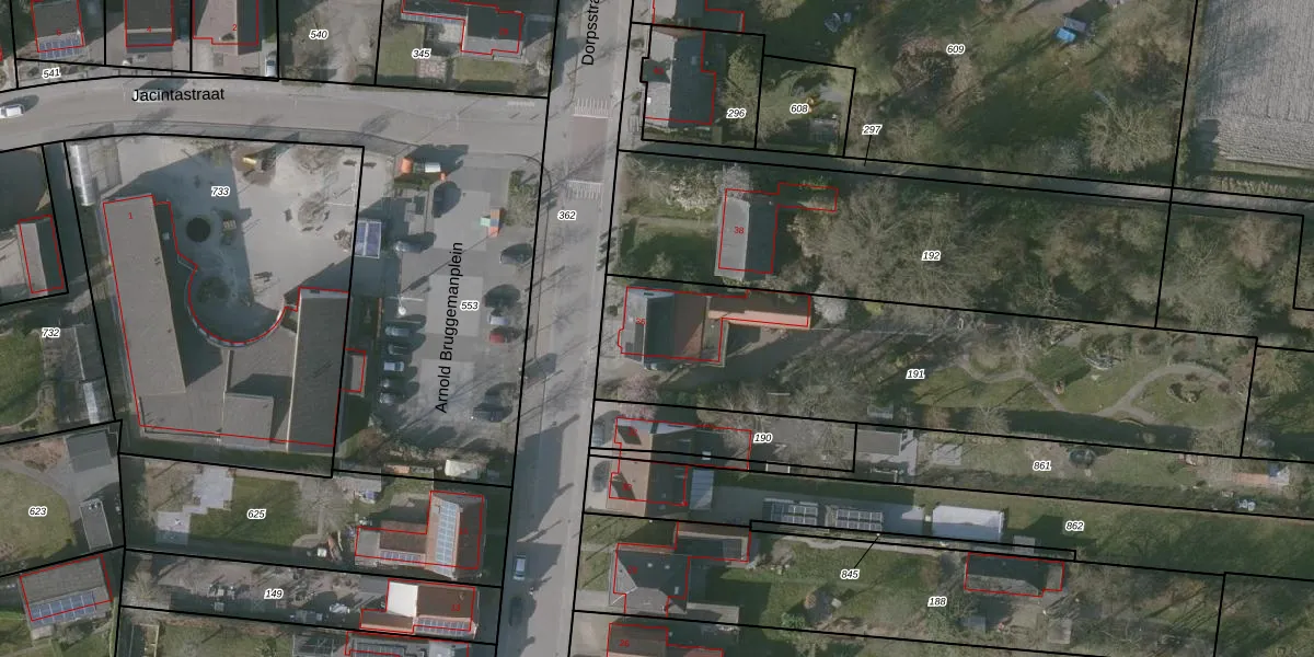 Het perceel waarop Dorpsstraat 36 staat heeft een oppervlakte van 1831 m². Dit is een zeer groot perceel. De perceeloppervlakte wordt geregistreerd door het Kadaster. Gedetailleerde informatie over de maten van dit perceel kunt u vinden in het rapport Kadastrale kaart met maatvoering van Dorpsstraat 36.