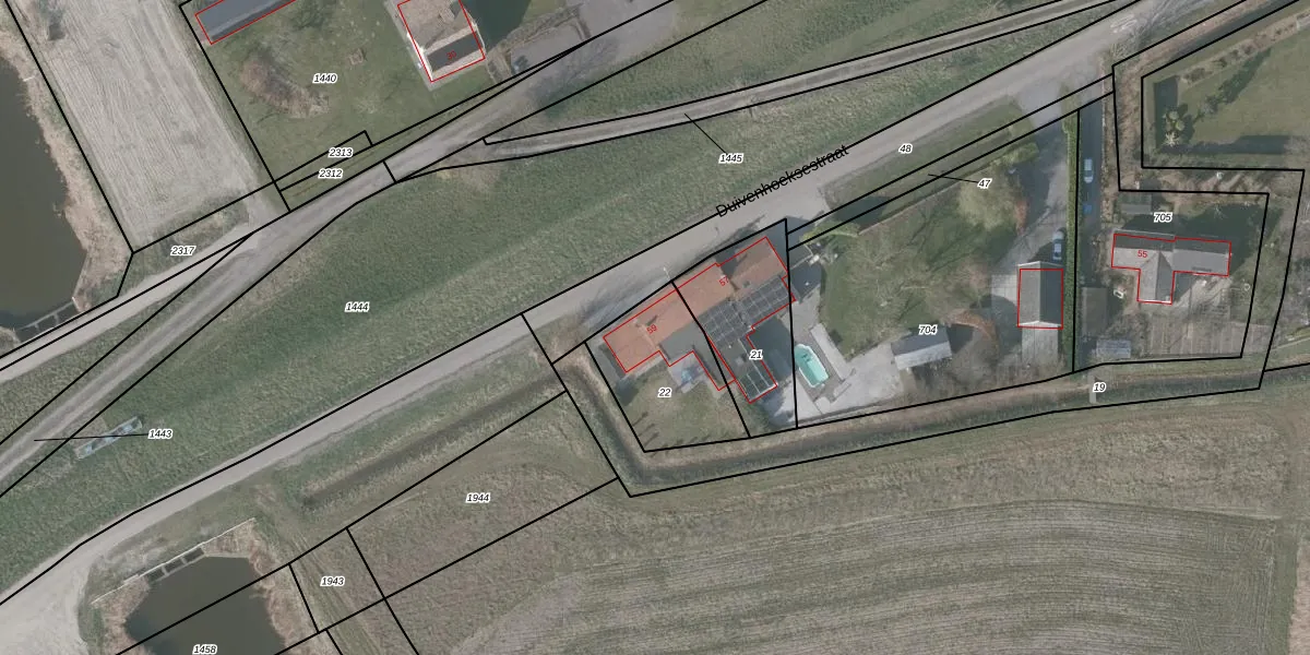 Duivenhoeksestraat 59 is gelegen op kadastraal perceel HUL00O22. Deze kadastrale aanduiding is uniek en wordt gebruikt door het Kadaster om eigendomsrechten en andere zakelijke rechten vast te leggen. Het perceel maakt onderdeel uit van de kadastrale gemeente Hulst.