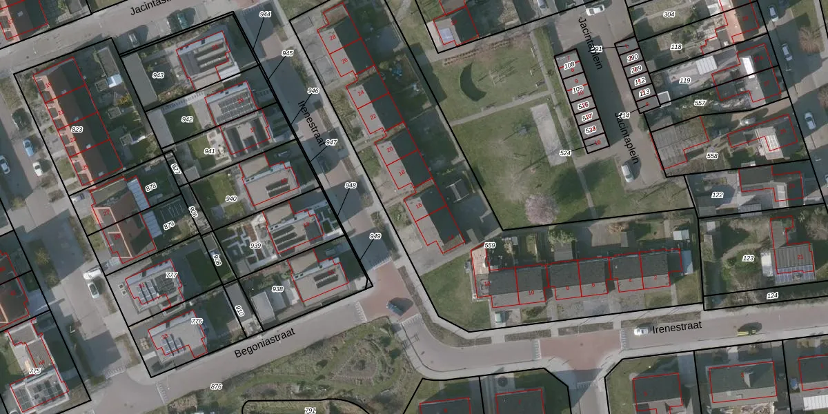 Het perceel waarop Irenestraat 16 staat heeft een oppervlakte van 3033 m². Dit is een zeer groot perceel. De perceeloppervlakte wordt geregistreerd door het Kadaster. Gedetailleerde informatie over de maten van dit perceel kunt u vinden in het rapport Kadastrale kaart met maatvoering van Irenestraat 16.
