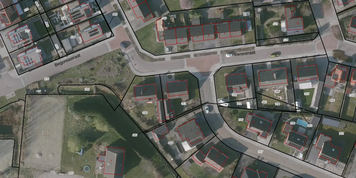 Irenestraat 7 is gelegen op kadastraal perceel HUL00H311. Deze kadastrale aanduiding is uniek en wordt gebruikt door het Kadaster om eigendomsrechten en andere zakelijke rechten vast te leggen. Het perceel maakt onderdeel uit van de kadastrale gemeente Hulst.