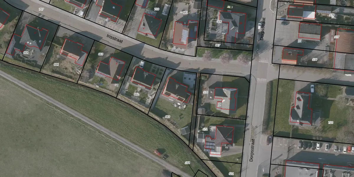 Het perceel waarop Irisstraat 1 staat heeft een oppervlakte van 745 m². Dit is een groot perceel. De perceeloppervlakte wordt geregistreerd door het Kadaster. Gedetailleerde informatie over de maten van dit perceel kunt u vinden in het rapport Kadastrale kaart met maatvoering van Irisstraat 1.