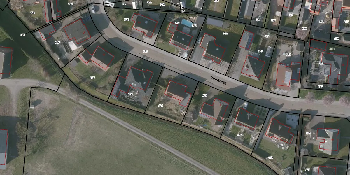Het perceel waarop Irisstraat 7 staat heeft een oppervlakte van 605 m². Dit is een groot perceel. De perceeloppervlakte wordt geregistreerd door het Kadaster. Gedetailleerde informatie over de maten van dit perceel kunt u vinden in het rapport Kadastrale kaart met maatvoering van Irisstraat 7.