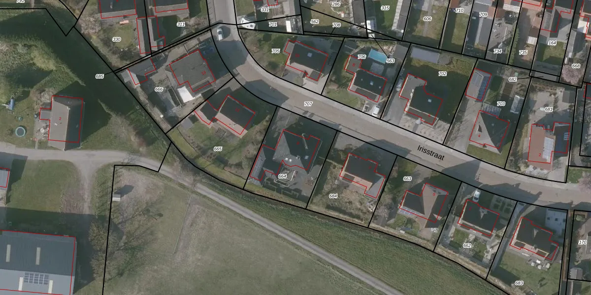 Het perceel waarop Irisstraat 9 staat heeft een oppervlakte van 657 m². Dit is een groot perceel. De perceeloppervlakte wordt geregistreerd door het Kadaster. Gedetailleerde informatie over de maten van dit perceel kunt u vinden in het rapport Kadastrale kaart met maatvoering van Irisstraat 9.