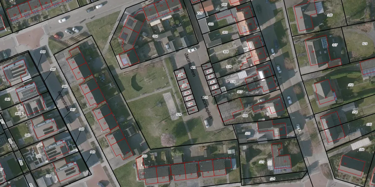 Het perceel waarop Jacintaplein 11 staat heeft een oppervlakte van 16 m². Dit is een klein perceel. De perceeloppervlakte wordt geregistreerd door het Kadaster. Gedetailleerde informatie over de maten van dit perceel kunt u vinden in het rapport Kadastrale kaart met maatvoering van Jacintaplein 11.