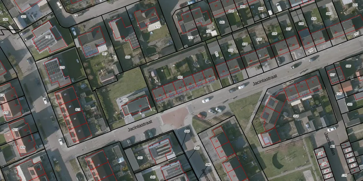 Het perceel waarop Jacintastraat 50 staat heeft een oppervlakte van 1076 m². Dit is een zeer groot perceel. De perceeloppervlakte wordt geregistreerd door het Kadaster. Gedetailleerde informatie over de maten van dit perceel kunt u vinden in het rapport Kadastrale kaart met maatvoering van Jacintastraat 50.
