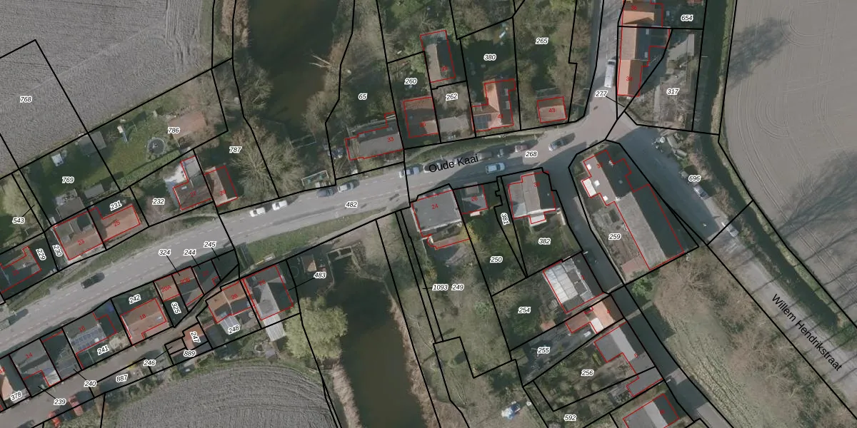 Oude Kaai 24 is gelegen op kadastraal perceel HUL00H249. Deze kadastrale aanduiding is uniek en wordt gebruikt door het Kadaster om eigendomsrechten en andere zakelijke rechten vast te leggen. Het perceel maakt onderdeel uit van de kadastrale gemeente Hulst.