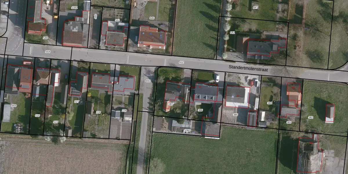 Standertmolenstraat 16 is gelegen op kadastraal perceel HUL00O387. Deze kadastrale aanduiding is uniek en wordt gebruikt door het Kadaster om eigendomsrechten en andere zakelijke rechten vast te leggen. Het perceel maakt onderdeel uit van de kadastrale gemeente Hulst.