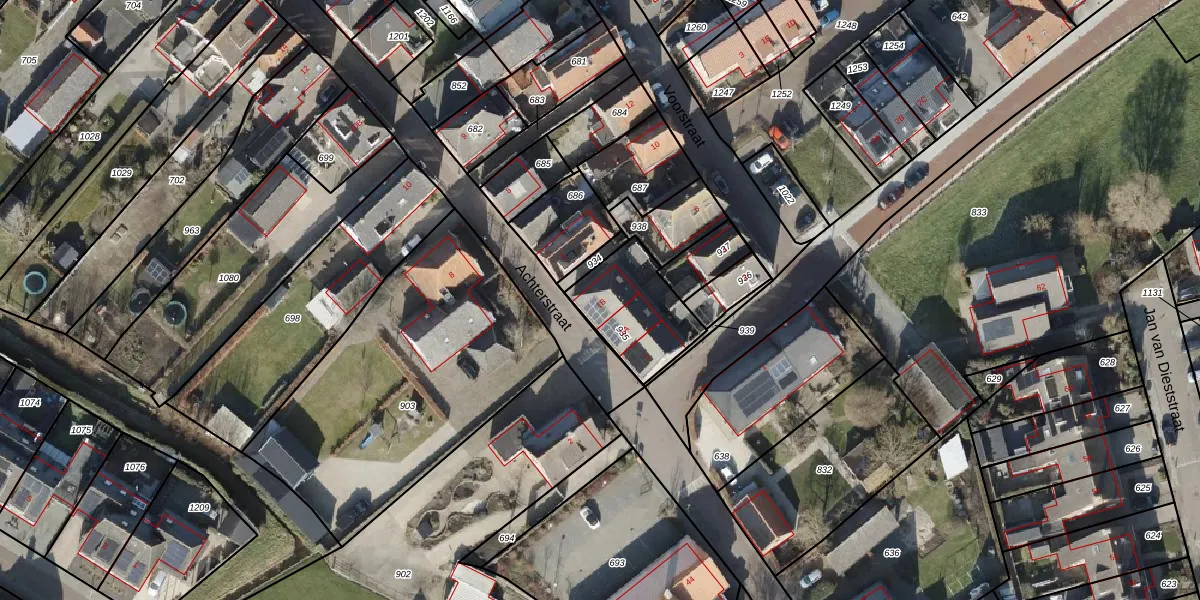 Het perceel waarop Achterstraat 1-B staat heeft een oppervlakte van 288 m². Dit is een middelgroot perceel. De perceeloppervlakte wordt geregistreerd door het Kadaster. Gedetailleerde informatie over de maten van dit perceel kunt u vinden in het rapport Kadastrale kaart met maatvoering van Achterstraat 1-B.