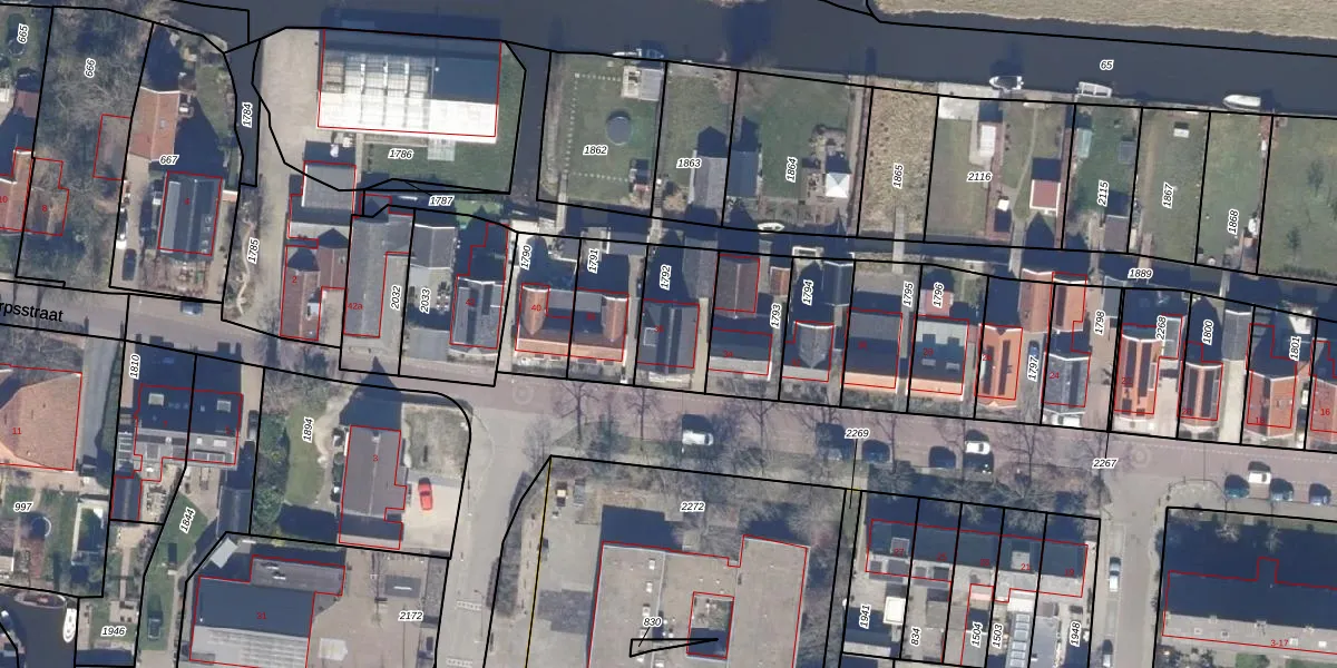 Gebruik de zoekbalk of klik op een perceel voor informatie over de adressen binnen dit perceel.