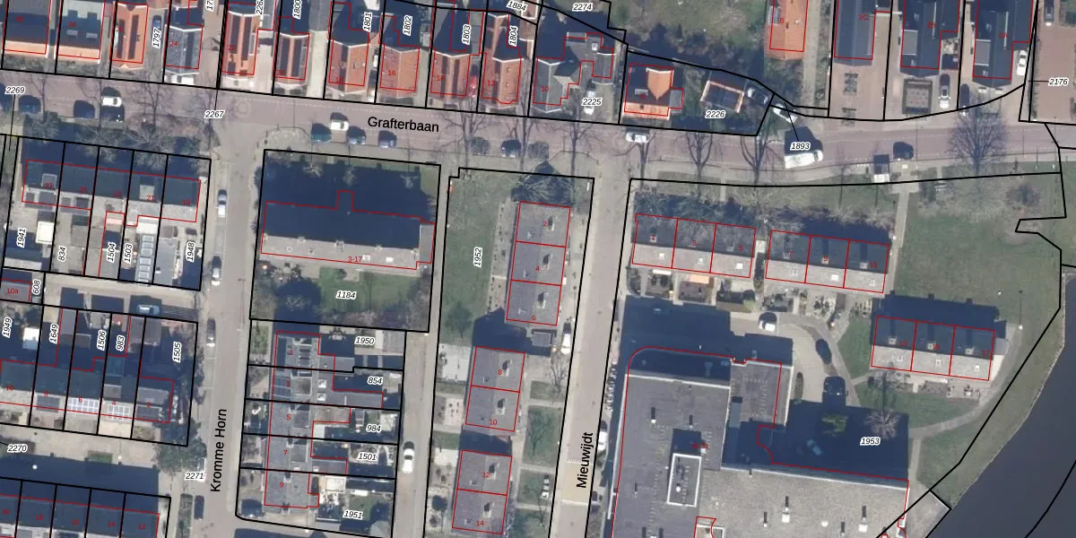 Het perceel waarop Mieuwijdt 4 staat heeft een oppervlakte van 1795 m². Dit is een zeer groot perceel. De perceeloppervlakte wordt geregistreerd door het Kadaster. Gedetailleerde informatie over de maten van dit perceel kunt u vinden in het rapport Kadastrale kaart met maatvoering van Mieuwijdt 4.