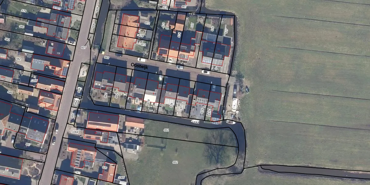 Het perceel waarop Oostwijk 12 staat heeft een oppervlakte van 175 m². Dit is een middelgroot perceel. De perceeloppervlakte wordt geregistreerd door het Kadaster. Gedetailleerde informatie over de maten van dit perceel kunt u vinden in het rapport Kadastrale kaart met maatvoering van Oostwijk 12.