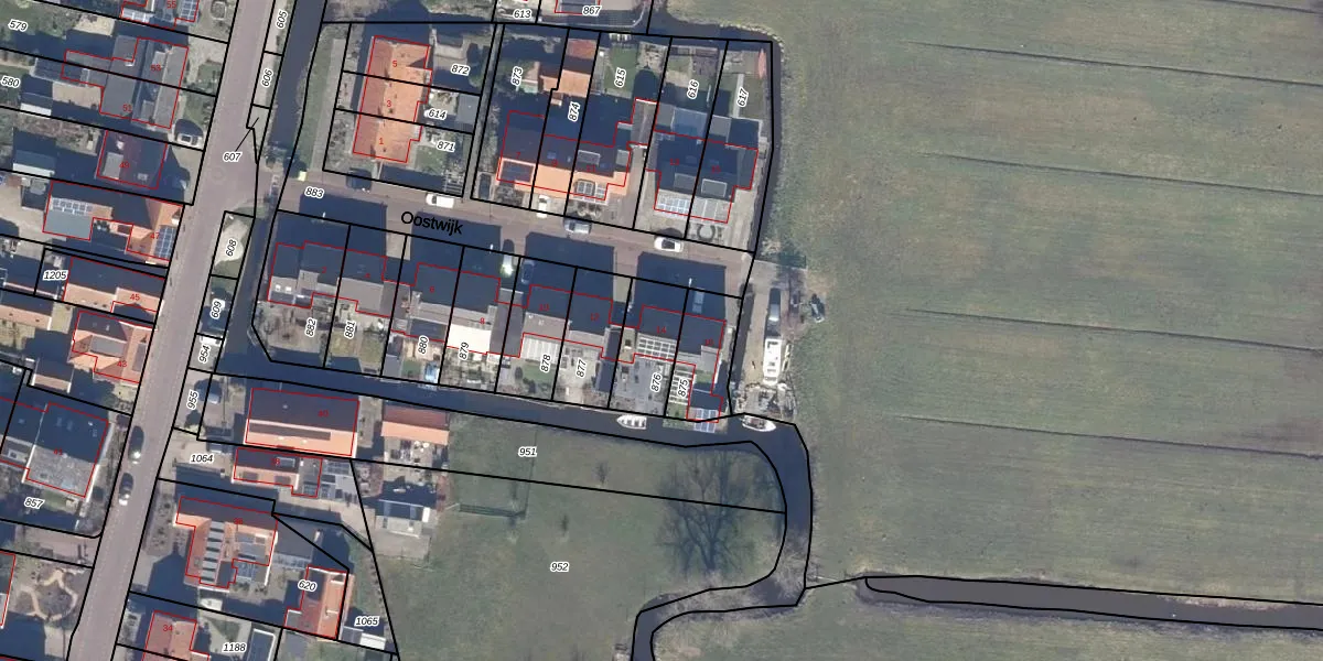 Het perceel waarop Oostwijk 14 staat heeft een oppervlakte van 172 m². Dit is een middelgroot perceel. De perceeloppervlakte wordt geregistreerd door het Kadaster. Gedetailleerde informatie over de maten van dit perceel kunt u vinden in het rapport Kadastrale kaart met maatvoering van Oostwijk 14.