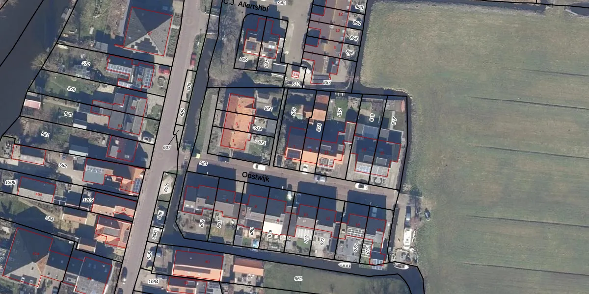 Het perceel waarop Oostwijk 7 staat heeft een oppervlakte van 253 m². Dit is een middelgroot perceel. De perceeloppervlakte wordt geregistreerd door het Kadaster. Gedetailleerde informatie over de maten van dit perceel kunt u vinden in het rapport Kadastrale kaart met maatvoering van Oostwijk 7.