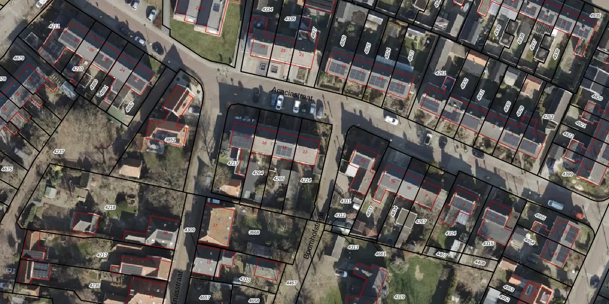 Acaciastraat 12 is gelegen op kadastraal perceel GBG00D4214. Deze kadastrale aanduiding is uniek en wordt gebruikt door het Kadaster om eigendomsrechten en andere zakelijke rechten vast te leggen. Het perceel maakt onderdeel uit van de kadastrale gemeente Gramsbergen.