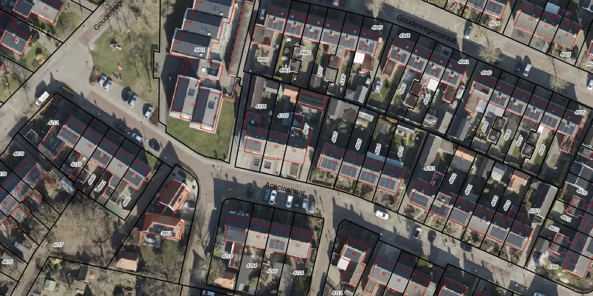 Acaciastraat 21 is gelegen op kadastraal perceel GBG00D4827. Deze kadastrale aanduiding is uniek en wordt gebruikt door het Kadaster om eigendomsrechten en andere zakelijke rechten vast te leggen. Het perceel maakt onderdeel uit van de kadastrale gemeente Gramsbergen.