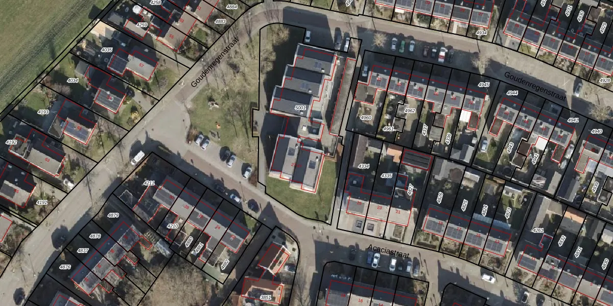Acaciastraat 29 is gelegen op kadastraal perceel GBG00D5001. Deze kadastrale aanduiding is uniek en wordt gebruikt door het Kadaster om eigendomsrechten en andere zakelijke rechten vast te leggen. Het perceel maakt onderdeel uit van de kadastrale gemeente Gramsbergen.