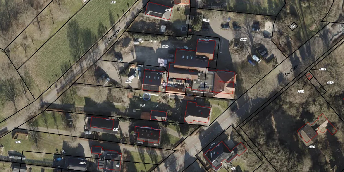 Het perceel waarop De Esch 1-h staat heeft een oppervlakte van 800 m². Dit is een groot perceel. De perceeloppervlakte wordt geregistreerd door het Kadaster. Gedetailleerde informatie over de maten van dit perceel kunt u vinden in het rapport Kadastrale kaart met maatvoering van De Esch 1-h.
