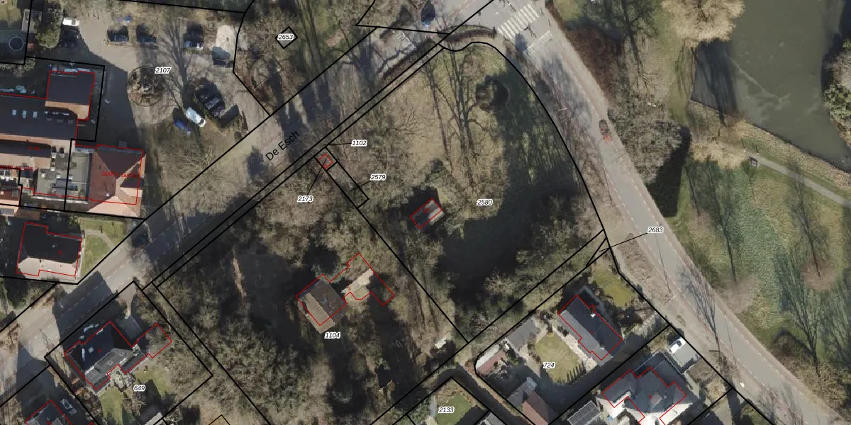 Het perceel waarop De Esch 2-a staat heeft een oppervlakte van 2619 m². Dit is een zeer groot perceel. De perceeloppervlakte wordt geregistreerd door het Kadaster. Gedetailleerde informatie over de maten van dit perceel kunt u vinden in het rapport Kadastrale kaart met maatvoering van De Esch 2-a.