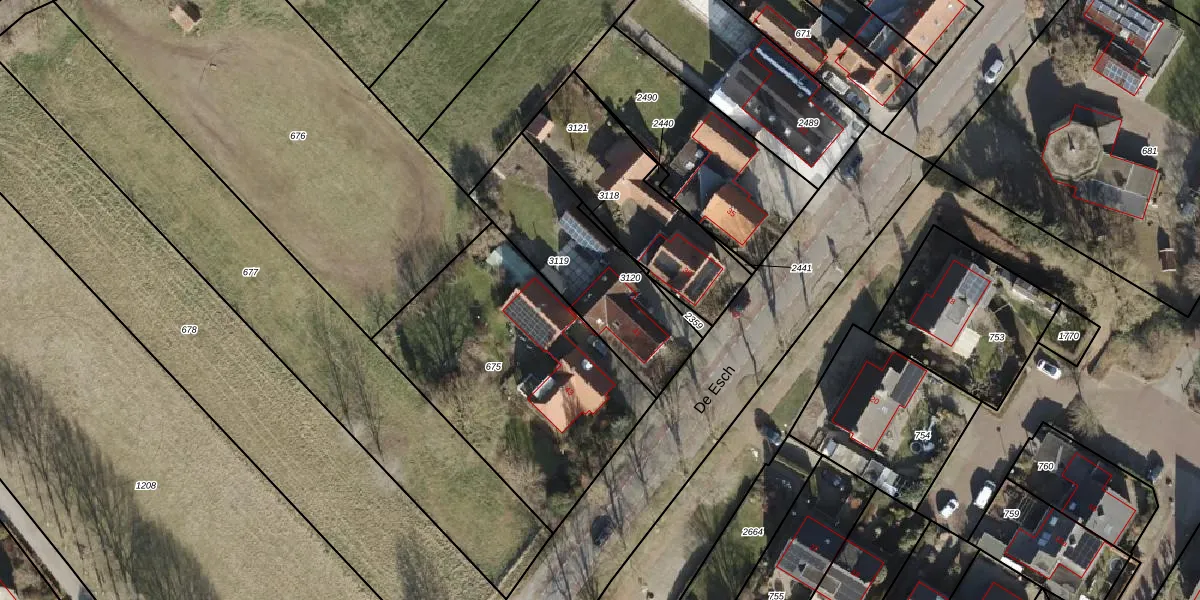 Het perceel waarop De Esch 41 staat heeft een oppervlakte van 581 m². Dit is een groot perceel. De perceeloppervlakte wordt geregistreerd door het Kadaster. Gedetailleerde informatie over de maten van dit perceel kunt u vinden in het rapport Kadastrale kaart met maatvoering van De Esch 41.