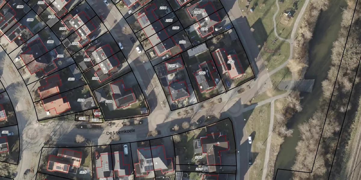 Het perceel waarop De Leemkoele 2 staat heeft een oppervlakte van 449 m². Dit is een groot perceel. De perceeloppervlakte wordt geregistreerd door het Kadaster. Gedetailleerde informatie over de maten van dit perceel kunt u vinden in het rapport Kadastrale kaart met maatvoering van De Leemkoele 2.
