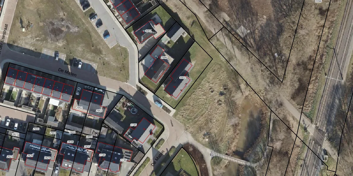 De Maten 45 is gelegen op kadastraal perceel GBG00M3002. Deze kadastrale aanduiding is uniek en wordt gebruikt door het Kadaster om eigendomsrechten en andere zakelijke rechten vast te leggen. Het perceel maakt onderdeel uit van de kadastrale gemeente Gramsbergen.