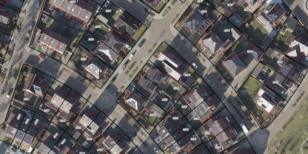 Het perceel waarop De Maten 5 staat heeft een oppervlakte van 315 m². Dit is een groot perceel. De perceeloppervlakte wordt geregistreerd door het Kadaster. Gedetailleerde informatie over de maten van dit perceel kunt u vinden in het rapport Kadastrale kaart met maatvoering van De Maten 5.