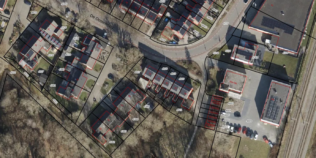 De Oostermaat 53 is gelegen op kadastraal perceel GBG00D4918. Deze kadastrale aanduiding is uniek en wordt gebruikt door het Kadaster om eigendomsrechten en andere zakelijke rechten vast te leggen. Het perceel maakt onderdeel uit van de kadastrale gemeente Gramsbergen.