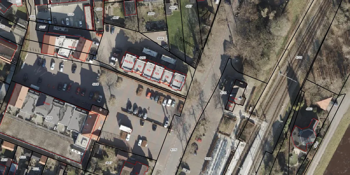 Het perceel waarop De Oostermaat 62-a staat heeft een oppervlakte van 1240 m². Dit is een zeer groot perceel. De perceeloppervlakte wordt geregistreerd door het Kadaster. Gedetailleerde informatie over de maten van dit perceel kunt u vinden in het rapport Kadastrale kaart met maatvoering van De Oostermaat 62-a.