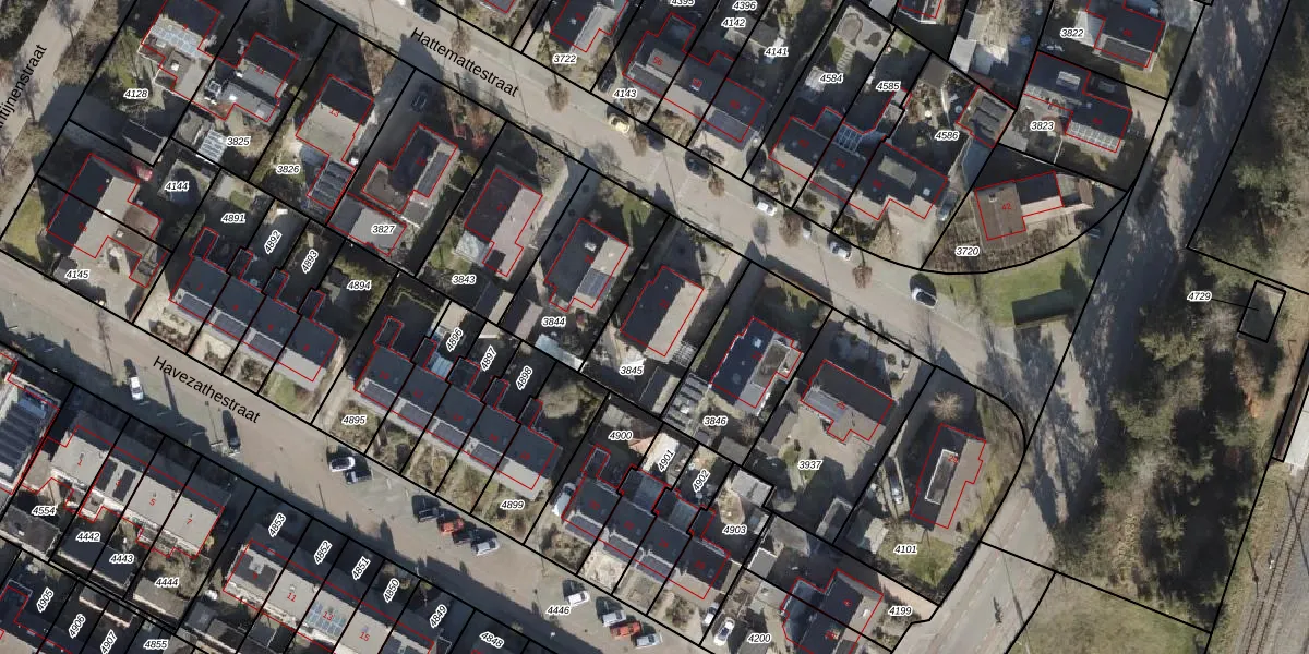 Het perceel waarop Hattemattestraat 21 staat heeft een oppervlakte van 402 m². Dit is een groot perceel. De perceeloppervlakte wordt geregistreerd door het Kadaster. Gedetailleerde informatie over de maten van dit perceel kunt u vinden in het rapport Kadastrale kaart met maatvoering van Hattemattestraat 21.