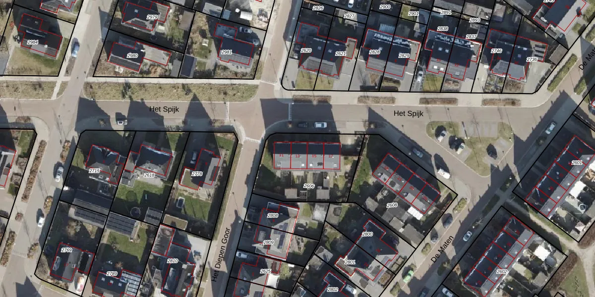 Het perceel waarop Het Spijk 13 staat heeft een oppervlakte van 735 m². Dit is een groot perceel. De perceeloppervlakte wordt geregistreerd door het Kadaster. Gedetailleerde informatie over de maten van dit perceel kunt u vinden in het rapport Kadastrale kaart met maatvoering van Het Spijk 13.