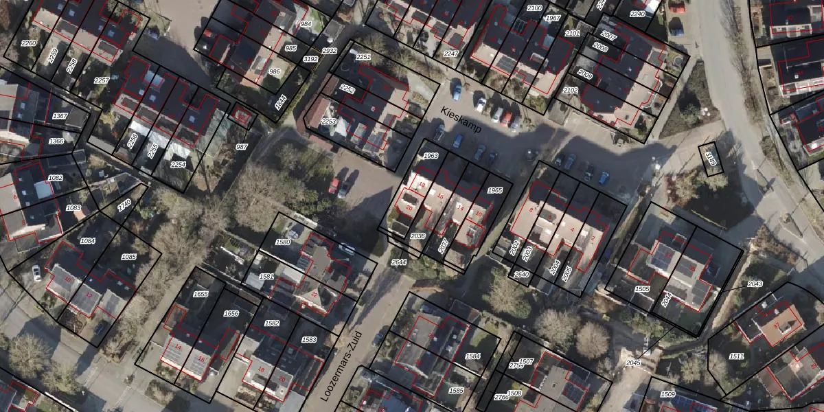 Het perceel waarop Kieskamp 20 staat heeft een oppervlakte van 164 m². Dit is een middelgroot perceel. De perceeloppervlakte wordt geregistreerd door het Kadaster. Gedetailleerde informatie over de maten van dit perceel kunt u vinden in het rapport Kadastrale kaart met maatvoering van Kieskamp 20.