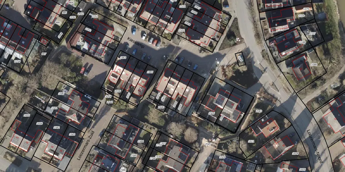 Gebruik de zoekbalk of klik op een perceel voor informatie over de adressen binnen dit perceel.