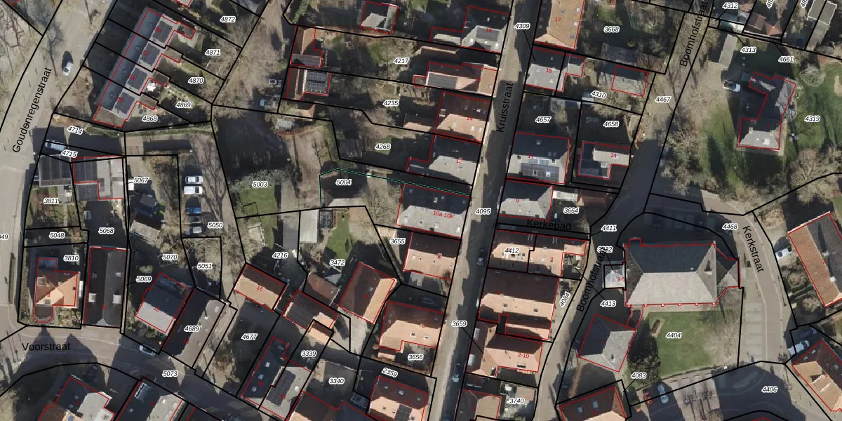 Kruisstraat 10-c is gelegen op kadastraal perceel GBG00D5004. Deze kadastrale aanduiding is uniek en wordt gebruikt door het Kadaster om eigendomsrechten en andere zakelijke rechten vast te leggen. Het perceel maakt onderdeel uit van de kadastrale gemeente Gramsbergen.