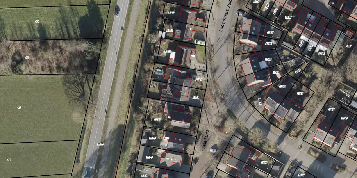 Het perceel waarop Loozermars-Zuid 19 staat heeft een oppervlakte van 310 m². Dit is een groot perceel. De perceeloppervlakte wordt geregistreerd door het Kadaster. Gedetailleerde informatie over de maten van dit perceel kunt u vinden in het rapport Kadastrale kaart met maatvoering van Loozermars-Zuid 19.